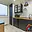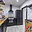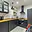 Součástí kuchyně je vkusná kuchyňská linka černé barvy s pracovní deskou v dekoru dřeva a vestavěnými spotřebiči, jako je myčka, horkovzdušná trouba, plynový sporák, mikrovlnná trouba, lednice s mrazákem a také pračka. A najdete zde i praktickou komodu s policemi a šuplíky.